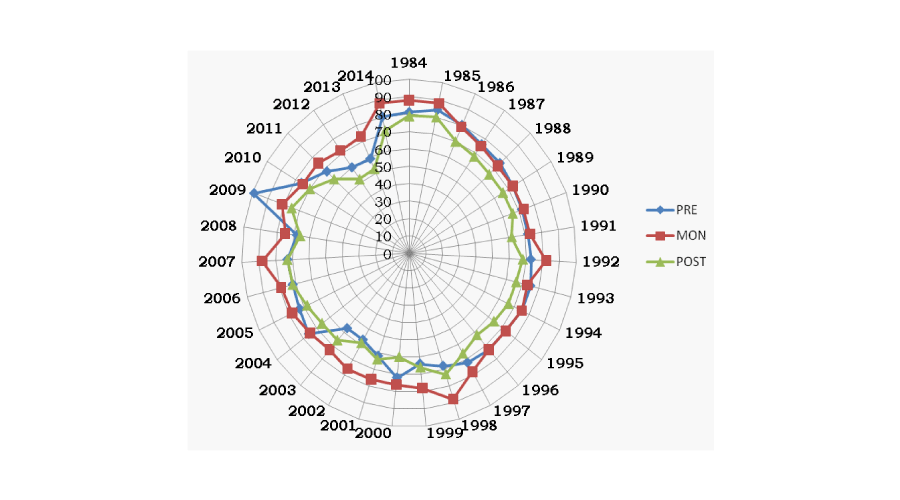 The water quality index exhibits a gradual decrease with time, except during premonsoon 2009, (Figure 2) when the diffusion of oxygen was maximum due to turbulent wave action caused by the super cyclone.